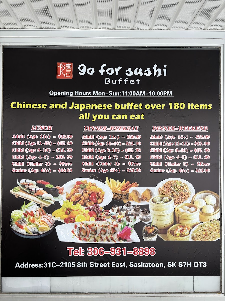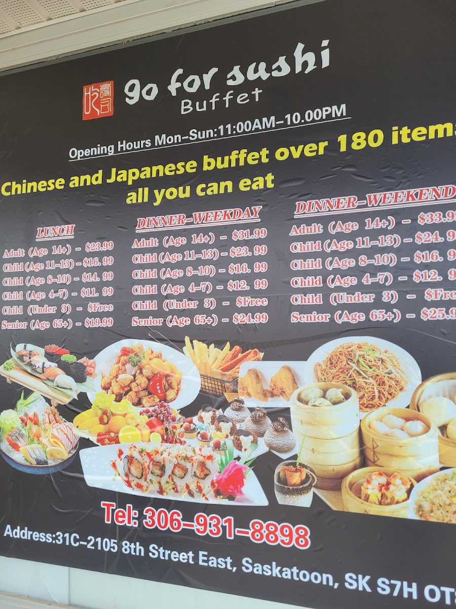 Welcome to Go For Sushi Buffet, a culinary oasis tucked away at 2105 8 St E, Saskatoon, SK. This vibrant establishment invites sushi lovers and food enthusiasts alike to indulge in an exuberant all-you-can-eat experience. With its tempting array of Asian and Japanese dishes, Go For Sushi Buffet crafts a delightful blend of flavors that cater to various palates.